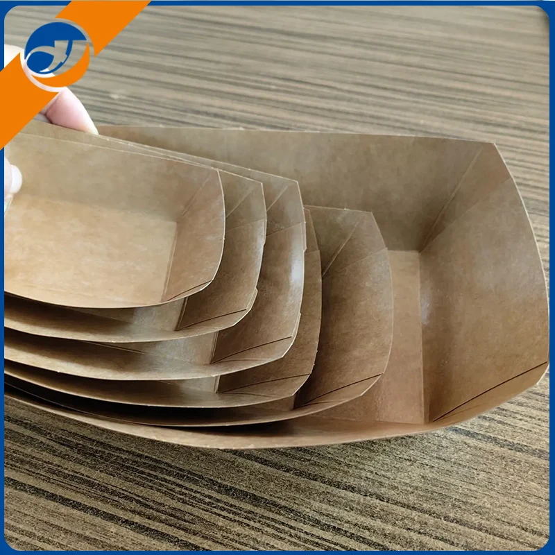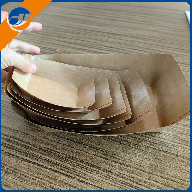 Stekt kycklingbåtlåda sticker ut med sitt unika båtformade utseende, vilket är inspirerat av formen på traditionella båtar. Zemeijia har många års erfarenhet av professionell produktion av papperslådor. Utformningen av stekt kycklingbåtlåda förbättrar inte bara förpackningsstabiliteten och minskar matstänkning under transport, utan ger också produktvis visuell överklagande.