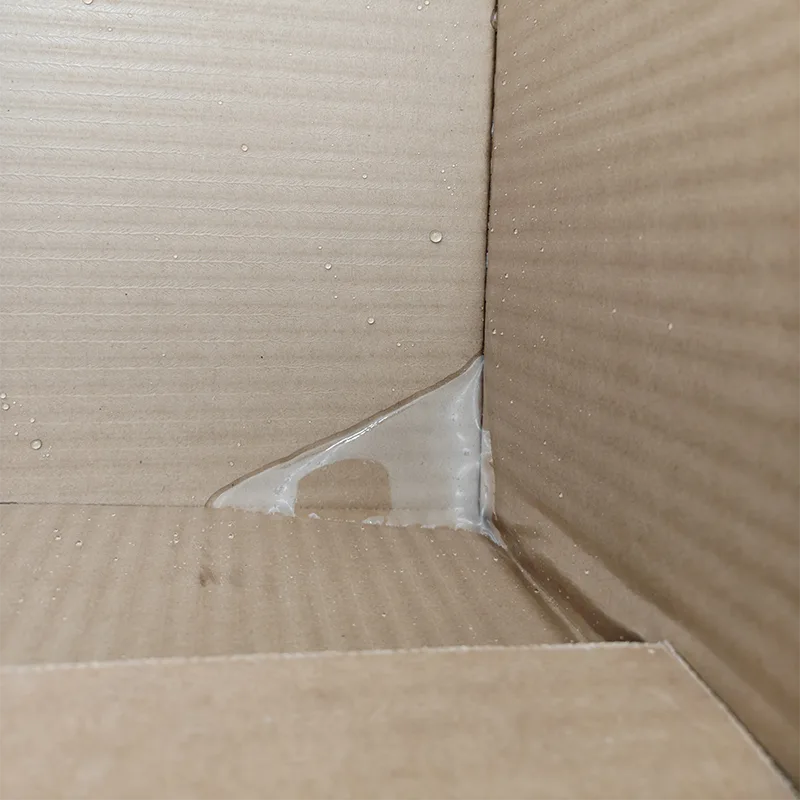 ● För scenarier som köksförvaring, transport under regniga dagar och omsättning av färskvaror som kan stöta på vatten, är lådans utsida helt täckt med en transparent vaxfilm av livsmedelskvalitet. Oavsiktligt spill av sojasås eller vatten kan enkelt torkas rent med en trasa, och vaxfilmen lossnar inte eller låter fukt tränga in i papperslagren, vilket gör att lådan mjuknar. Även vid korta lätta regnstänk blir det inga vattenmärken och lådans hårdhet förblir oförändrad.
