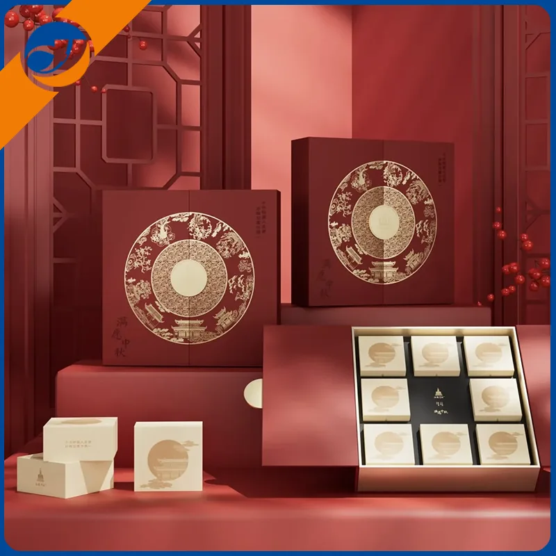 Mid-autumn Festival presentförpackningVänd/utdragbar presentförpackning: Lätt att öppna och förvara, inbyggda skiktade kortplatser för att fixa gåvor.