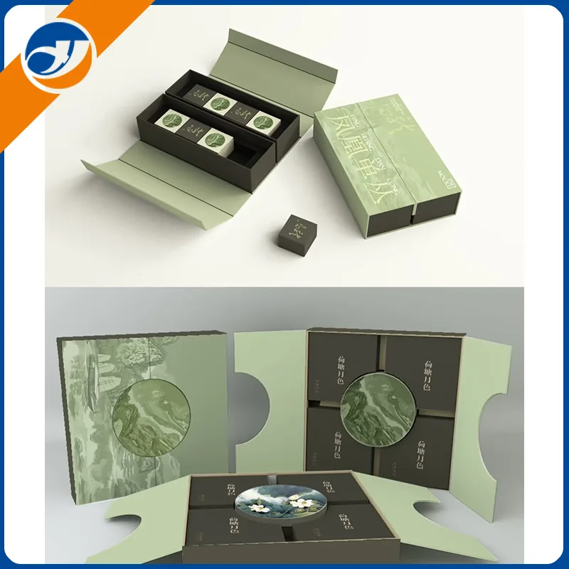 Mid-autumn Festival presentförpackningAnvänder miljövänliga och biologiskt nedbrytbara material, och den yttre förpackningen kan omvandlas till en lagringslåda eller dekoration, vilket ekar begreppet hållbar utveckling.Mid-autumn Festival presentförpackningAnvänder klassiska mitten av hösten som blått och vitt porslinblå, förgylld och vermilion och matchas med matt och heta stämpeltekniker för att skapa en lågmässig och lyxig visuell effekt, med hänsyn till traditionell charm och modern minimalistisk stil. Mid-Autumn Festival presentförpackning tar kultur som sin själ, kvalitet som grund och innovation som sina vingar för att skapa en semesterpresentlösning som kombinerar estetiskt värde och praktiska funktioner. Det är ett idealiskt val för att förmedla återförening välsignelser och belysa varumärkestil.
