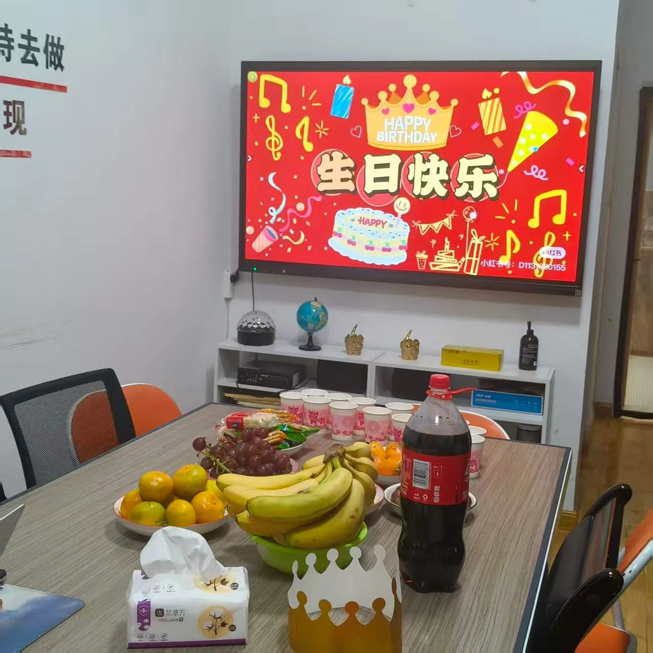 General Manager Gao förberedde en söt födelsedagstårta och färsk frukt för alla i förväg. Det var inget avsiktligt oväsen, alla delade kakan långsamt och den söta smaken spred sig tyst, som företagets tankar för alla, utan att säga så mycket, men väldigt uppriktigt.