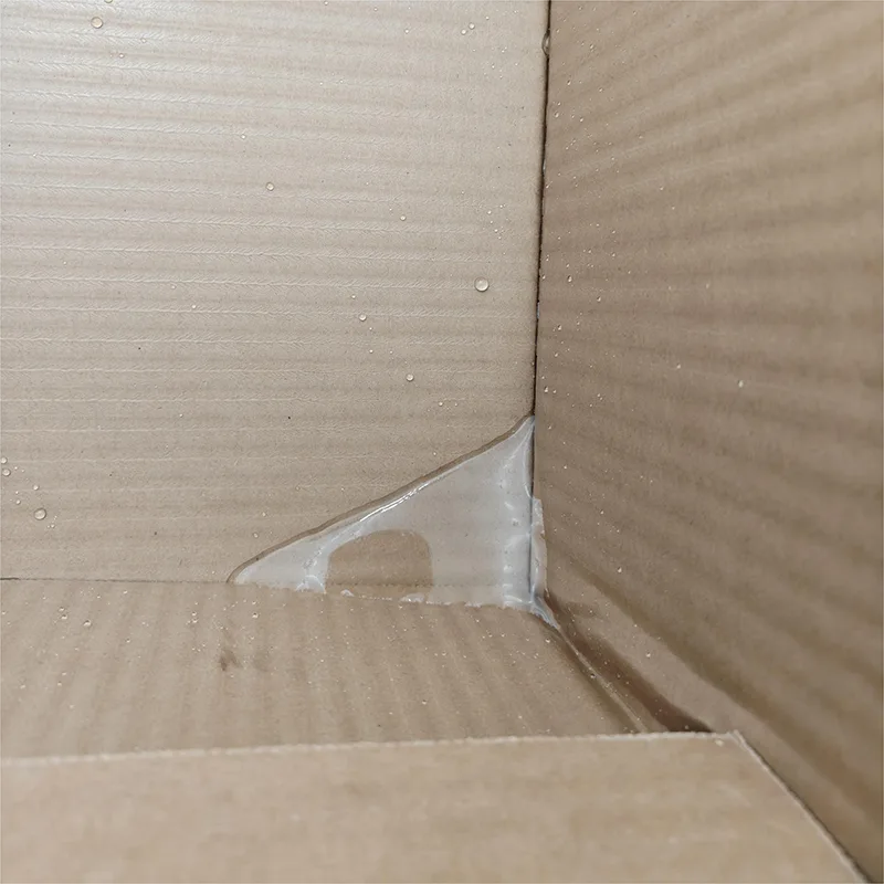 Flytande produkter (som dricksvatten på flaska, fruktjuice, såser) eller dagliga kemiska produkter som är benägna att bli fuktiga (som tvättmedel, diskmedel, våtservetter) kan uppleva läckage, spill under lagring och transport, eller kan försämras eller skada förpackningen på grund av fuktiga miljöer. Vattentåliga korrugerade lådor kan motstå vätskeerosion, minska förluster orsakade av läckor och bibehålla ett rent utseende på förpackningen.